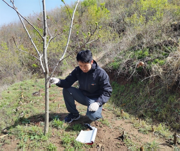 李月學(xué)習(xí)山楂樹(shù)剪枝技術(shù)。