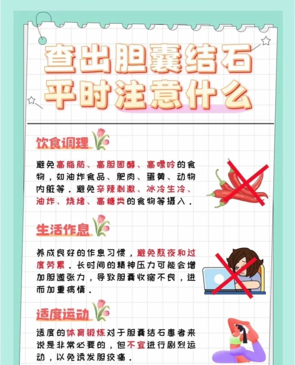 定期體檢:定期進(jìn)行體檢可以及早發(fā)現(xiàn)膽囊結(jié)石并采取相應(yīng)的治療措施。特別是有膽囊結(jié)石家族史或代謝性疾病史的人群應(yīng)更加重視體檢。