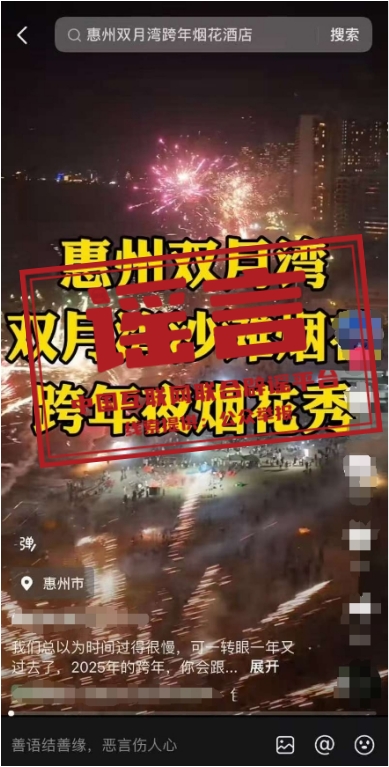 ??真相:近期,網(wǎng)絡(luò)上出現(xiàn) “廣東惠州雙月灣2025跨年煙花秀”“2025雙月灣跨年倒數(shù)夜”“雙月灣跨年煙花秀”等信息,引發(fā)關(guān)注。經(jīng)相關(guān)部門核實(shí),網(wǎng)傳信息均系不實(shí)信息。目前廣東省惠州市惠東縣雙月灣沒有舉辦2025年跨年煙花秀活動的安排,請廣大游客不聽謠、不信謠、不傳謠,一切以官方發(fā)布信息為準(zhǔn)。(來源:“惠州日報(bào)”微信公眾號、惠東文旅體)
