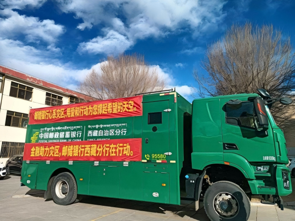 郵儲銀行西藏自治區(qū)分行金融流動服務(wù)車前往日喀則市定日縣,為震區(qū)百姓提供金融服務(wù)