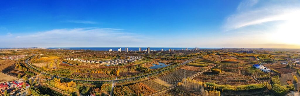 2024年11月,俯瞰北戴河新區(qū),斑駁秋色與藍(lán)天大海交相輝映。(資料片)北戴河新區(qū)融媒體中心提供
