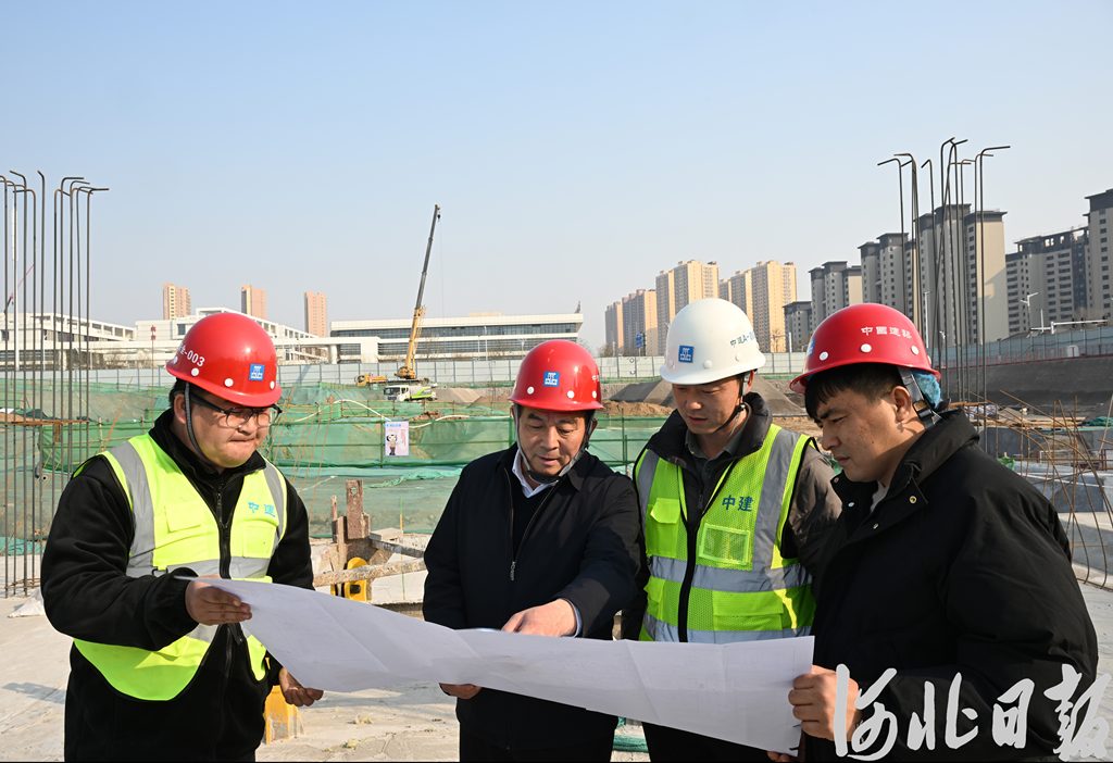 2月27日,正定縣塔元莊村黨委書記、村委會(huì)主任尹計(jì)平(左二)在康養(yǎng)項(xiàng)目建設(shè)工地,了解施工情況。河北日報(bào)記者史晟全攝