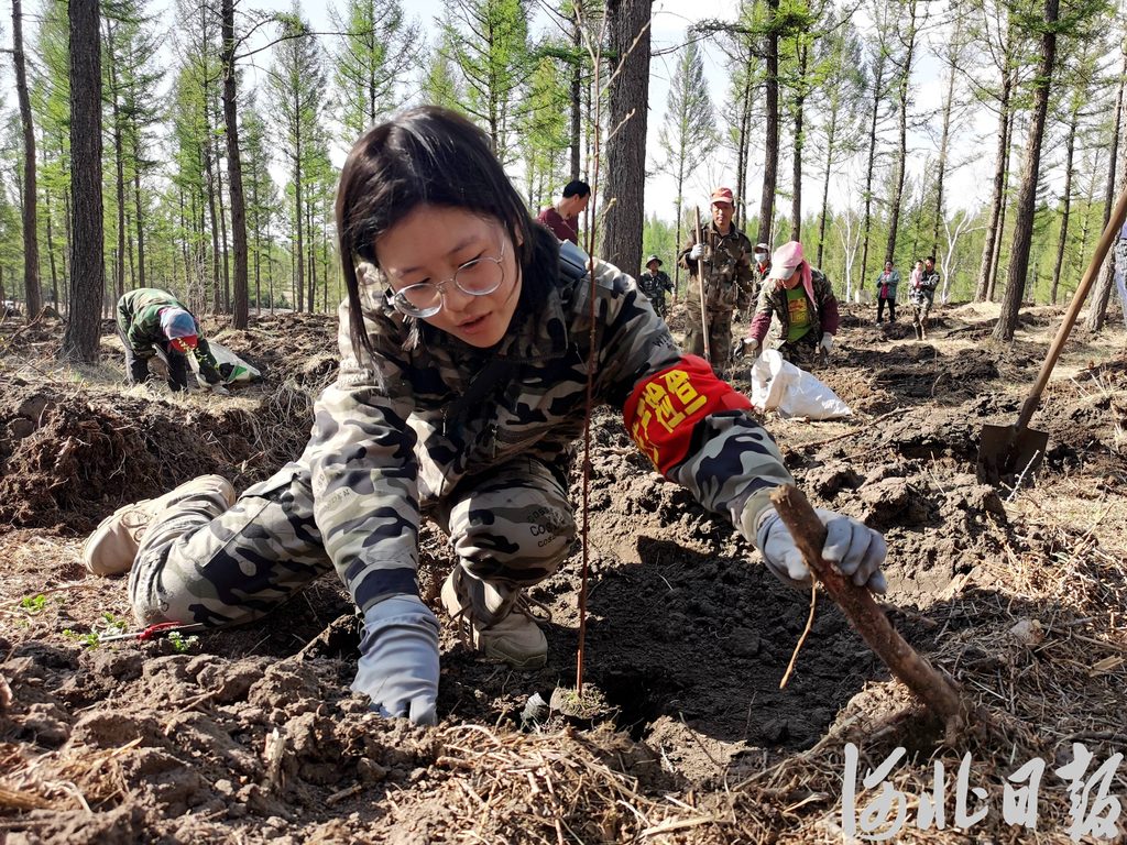 塞罕壩機(jī)械林場“林三代”劉鑫洋正在參加春季林冠下造林。(資料圖)河北日報(bào)記者陳寶云攝