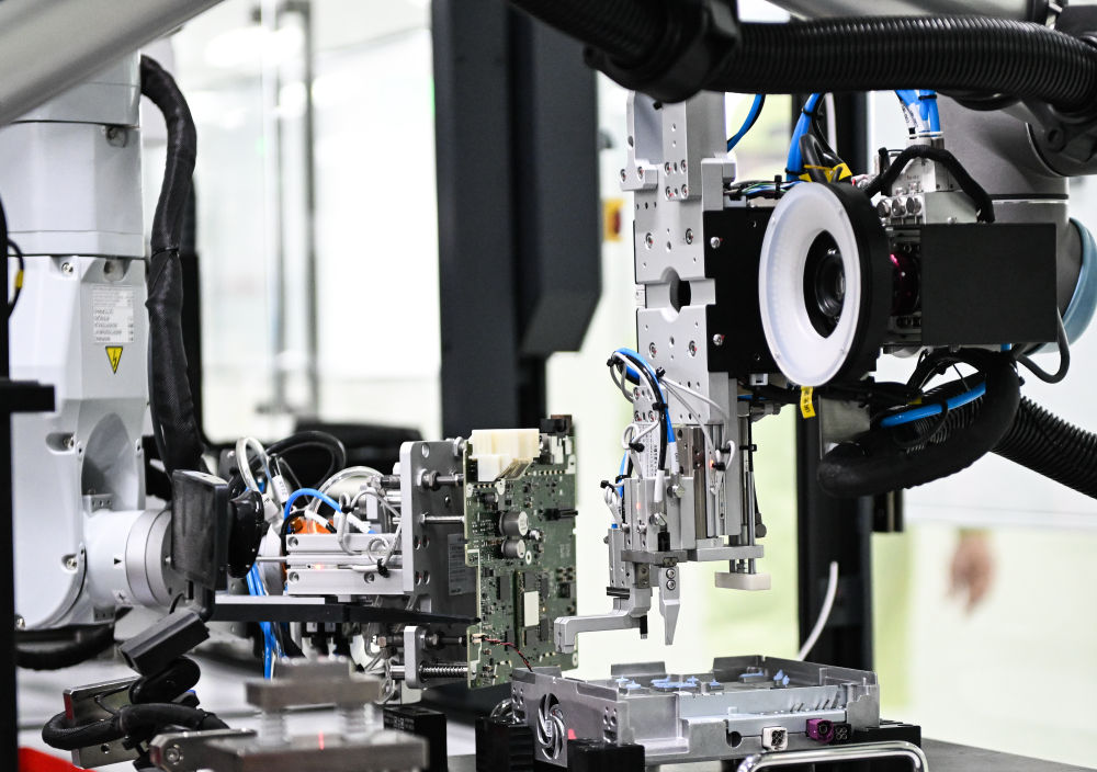 2024年2月27日,在江蘇無錫車聯(lián)天下信息技術(shù)有限公司,機器人在生產(chǎn)智能網(wǎng)聯(lián)汽車座艙域控制器。近年來,無錫市全力提升產(chǎn)業(yè)創(chuàng)新能力和數(shù)字化綠色化發(fā)展水平,一批企業(yè)通過生產(chǎn)換線、人機協(xié)同、“上云用數(shù)賦智”等,打造智能工廠、智能車間,推動企業(yè)降本、提質(zhì)、節(jié)能、增效,為制造業(yè)高質(zhì)量發(fā)展提供新動能。