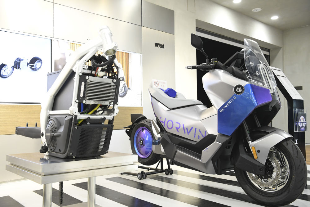這是在江蘇常州浩萬新能源科技有限公司展廳拍攝的一款電動摩托車(2024年6月1日)。該公司初創(chuàng)于2016年,是一家主打海外市場的智能電動摩托車生產(chǎn)商,產(chǎn)品銷往100多個國家和地區(qū),擁有200多項核心技術(shù)專利。近年來,常州著力打造“新能源之都”,從政策、人才等方面提供支持,助力新能源民營企業(yè)“走出去”。
