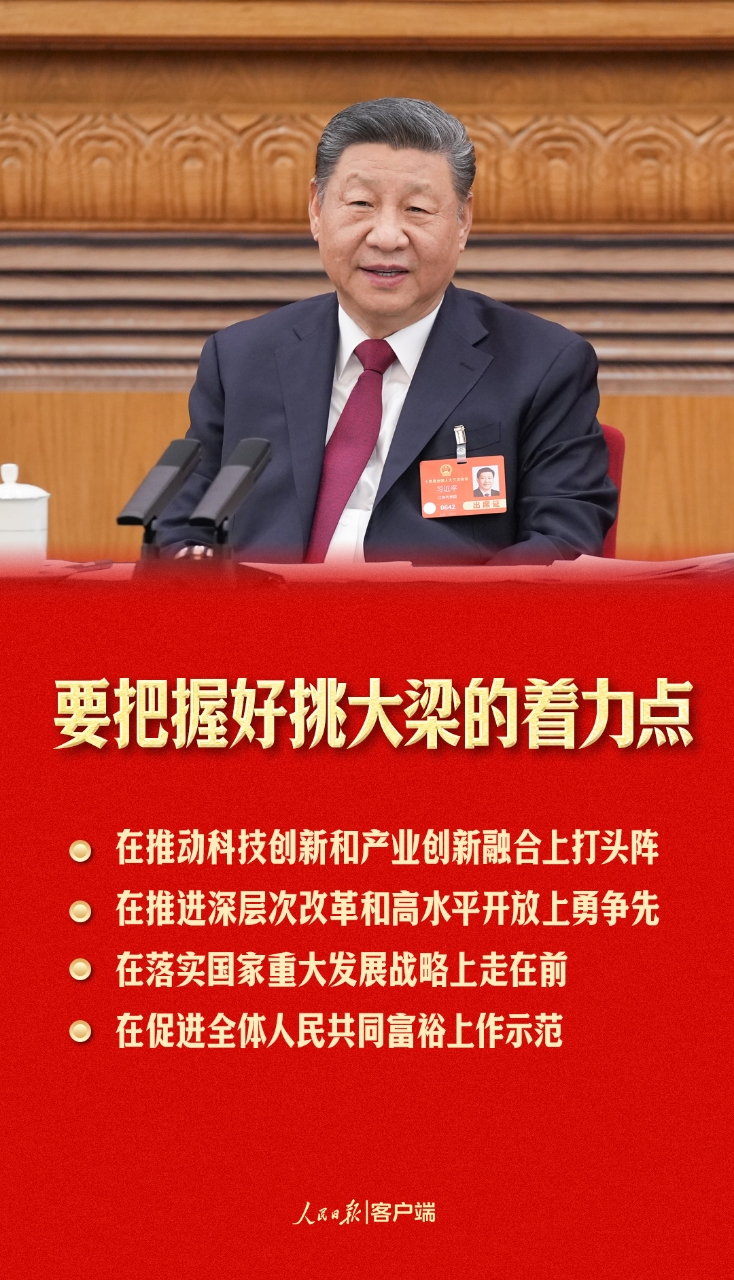 2023年1月,習(xí)近平總書記在江蘇當(dāng)選第十四屆全國(guó)人大代表。連續(xù)三年到江蘇代表團(tuán)參加審議,總書記都提到了“挑大梁”這個(gè)關(guān)鍵詞。