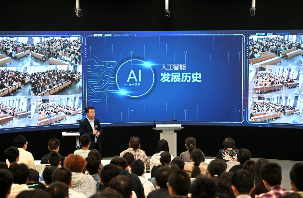 2024年9月20日,天津大學人工智能學院胡清華教授在授課。天津大學在2024年秋季學期推出《人工智能導論》課程,由8位人工智能及交叉學科領(lǐng)域的教授共同打造,同時配備30名來自智算學部、精儀學院、自動化學院、理學院等13個學院的專業(yè)教師,面向全體本科生進行授課。