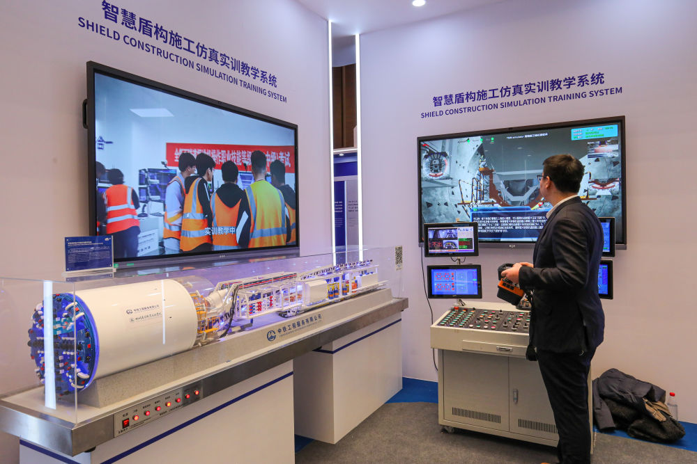 2024年1月30日,工作人員在上海舉辦的“數(shù)智未來”教育展上演示智慧盾構(gòu)施工仿真實訓教學系統(tǒng)。2024世界數(shù)字教育大會以“數(shù)字教育:應(yīng)用、共享、創(chuàng)新”為主題,圍繞教師數(shù)字素養(yǎng)與勝任力提升、數(shù)字化與學習型社會建設(shè)、數(shù)字教育評價、人工智能與數(shù)字倫理、數(shù)字變革對基礎(chǔ)教育的挑戰(zhàn)與機遇、教育治理數(shù)字化與數(shù)字教育治理等議題展開討論。