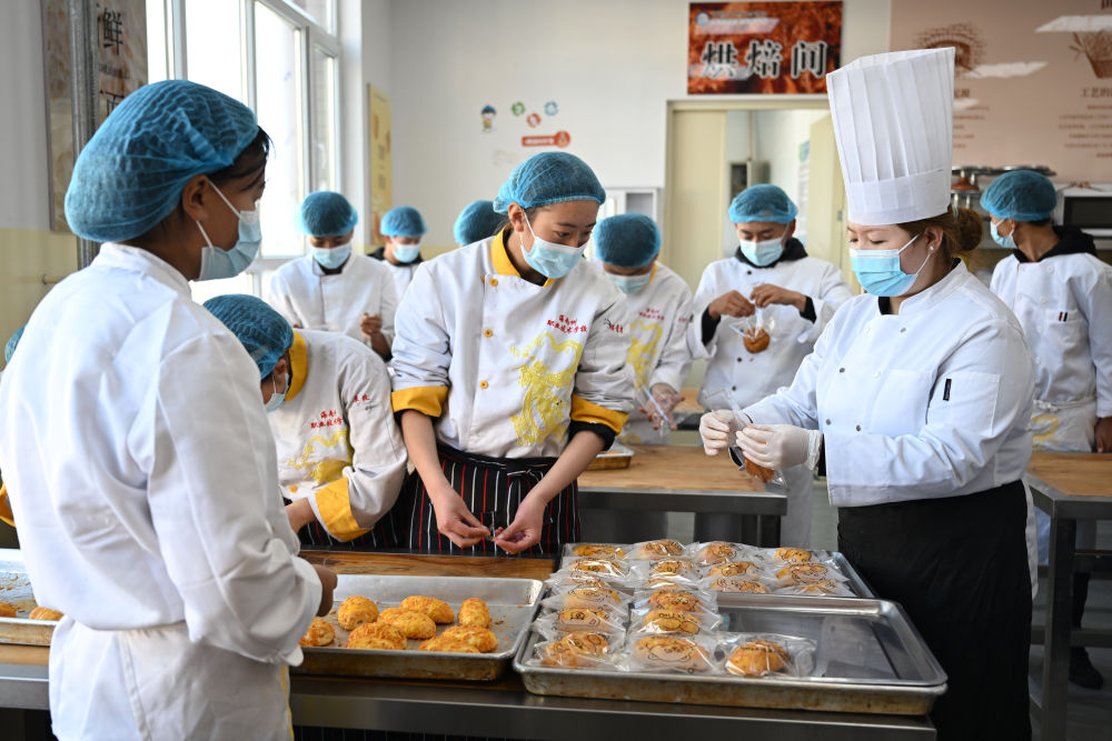 2024年12月17日,青海省海南藏族自治州職業(yè)技術(shù)學校烹飪專業(yè)教師黃雪妍(前右)在指導學生學習西點烘焙。近年來,青海省海南藏族自治州加大職業(yè)技術(shù)人才培養(yǎng)力度,開設(shè)藏醫(yī)藥、汽車維修、烹飪等專業(yè),通過推進學校與企業(yè)聯(lián)合辦學,創(chuàng)新校企合作、定向培養(yǎng)等辦學模式,拓寬職業(yè)教育畢業(yè)生就業(yè)渠道。