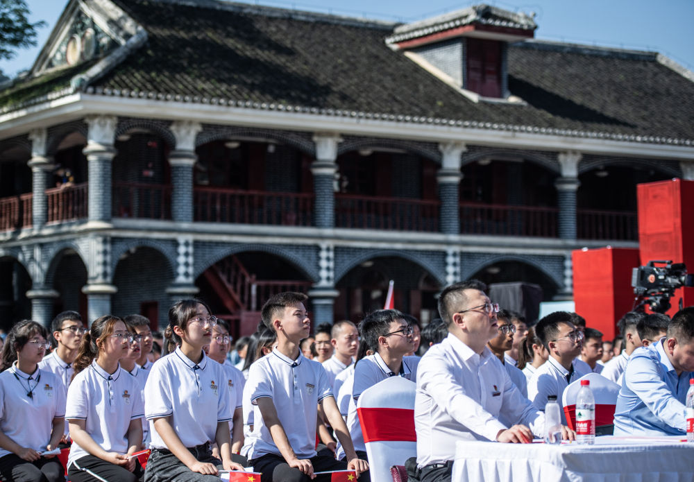 2021年5月14日,在貴州省遵義市遵義會議紀念館廣場,貴州醫(yī)科大學師生代表參加“賡續(xù)百年紅色基因,傳承守護健康血脈”——“四地同上一堂黨史課”活動。