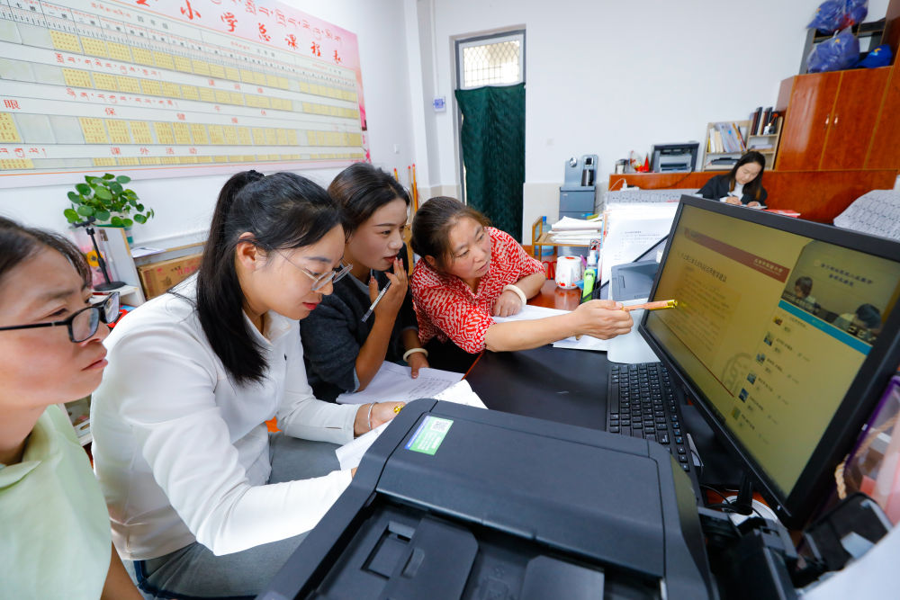 2024年9月27日,四川省甘孜藏族自治州道孚縣城關(guān)第一完全小學六年級的語文老師利用成都市實驗小學全日制遠程植入式教學系統(tǒng)進行集體備課。道孚縣城關(guān)第一完全小學始建于1910年,大批學生來自邊遠地區(qū)農(nóng)牧民家庭。學校通過互聯(lián)網(wǎng)遠程教育系統(tǒng),引入成都市實驗小學的辦學理念、課堂教學、教研活動、管理舉措,讓川西高原的孩子們在家門口也能接受現(xiàn)代優(yōu)質(zhì)教育。