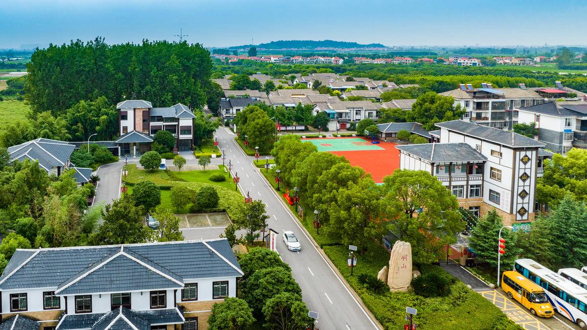 鳥(niǎo)瞰鄂州市峒山村,村容整潔、綠樹(shù)成蔭。(湖北日?qǐng)?bào)全媒記者 薛婷 攝)