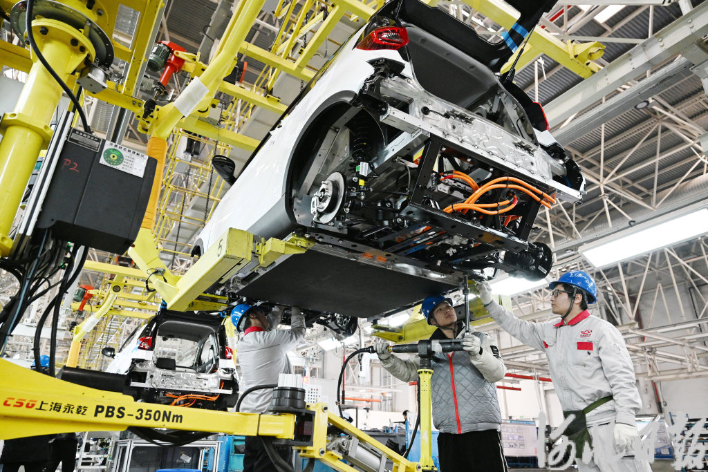 2月25日,奇瑞新能源汽車股份有限公司石家莊分公司總裝車間員工在加緊生產(chǎn)。河北日報記者史晟全攝