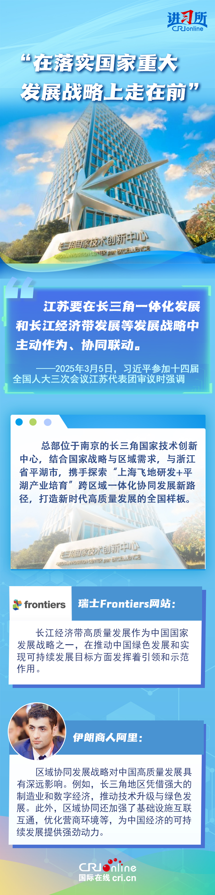 從紫金山實驗室的6G突破到蘇州工業(yè)園區(qū)的開放升級,從長三角協(xié)同創(chuàng)新到永聯(lián)村的共富實踐,江蘇在中國式現(xiàn)代化新實踐上已成為世界觀察中國高質(zhì)量發(fā)展的重要窗口。國際人士認(rèn)為,中國因地制宜的創(chuàng)新發(fā)展之路有力推動了國家現(xiàn)代化進(jìn)程與民生福祉提升。