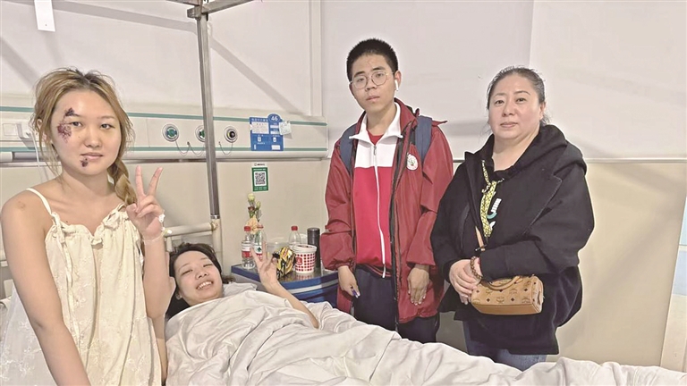 趙璟軒和媽媽一直惦記著兩位受傷的女孩兒數(shù)次到醫(yī)院看望。(圖片由趙璟軒提供)