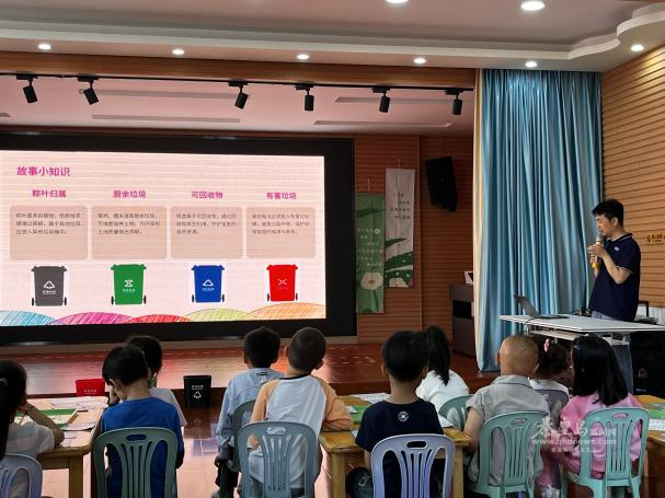 活動伊始,孩子們圍坐在一起,聆聽著與端午節(jié)和垃圾分類相關的童話故事。宣講老師用生動的語言和孩子們互動,讓孩子們在故事中學習到垃圾分類的重要性。小朋友們積極舉手回答問題,現(xiàn)場氣氛活躍,答對的孩子們興高采烈地領到了五彩繩,作為他們智慧的獎勵。
