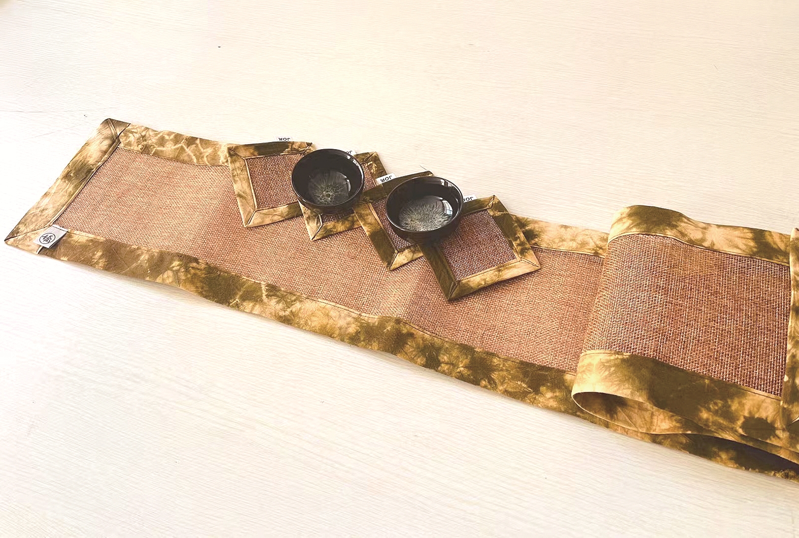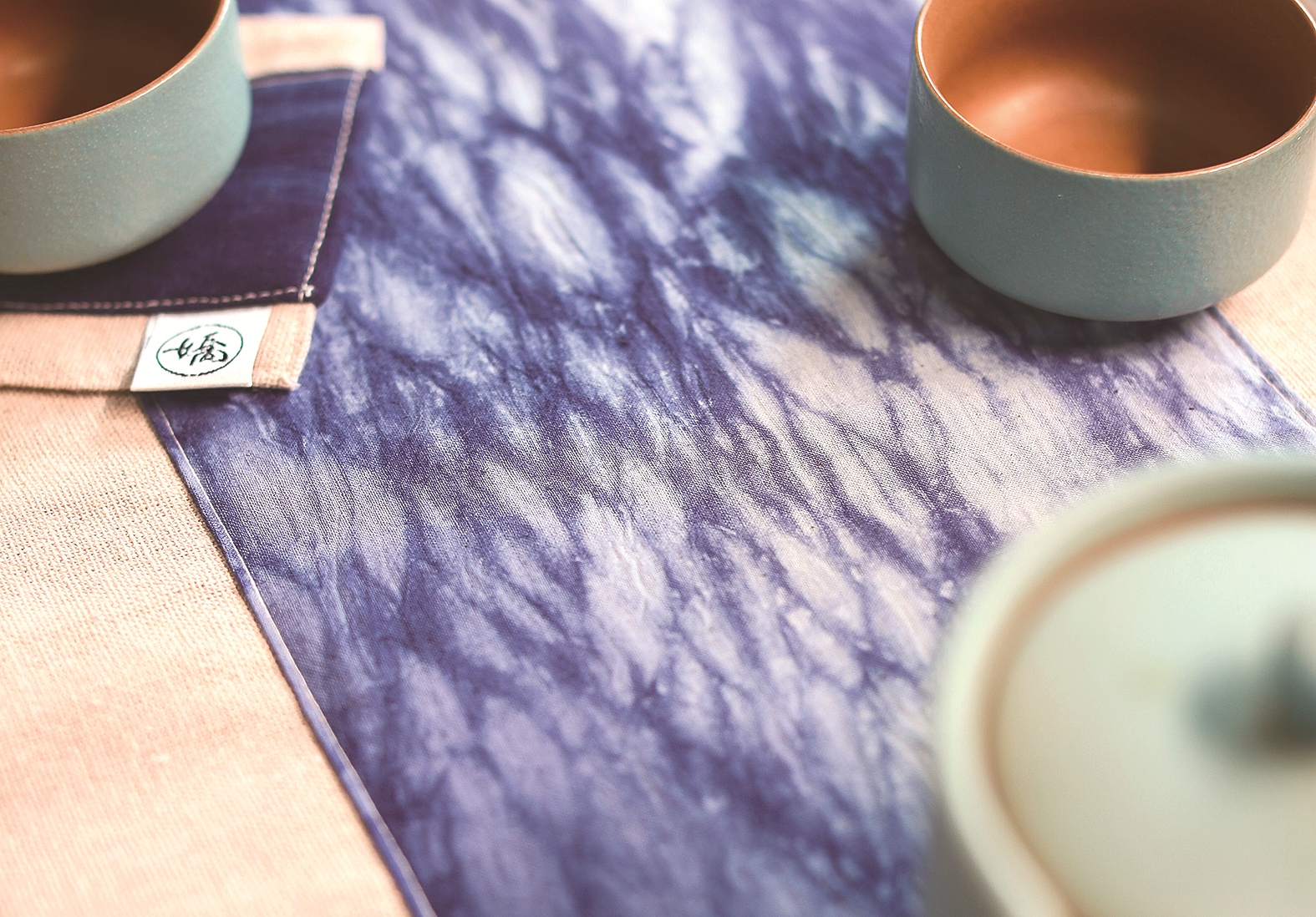 古樸的扎染茶席將傳統(tǒng)扎染技藝完美融入現(xiàn)代生活。