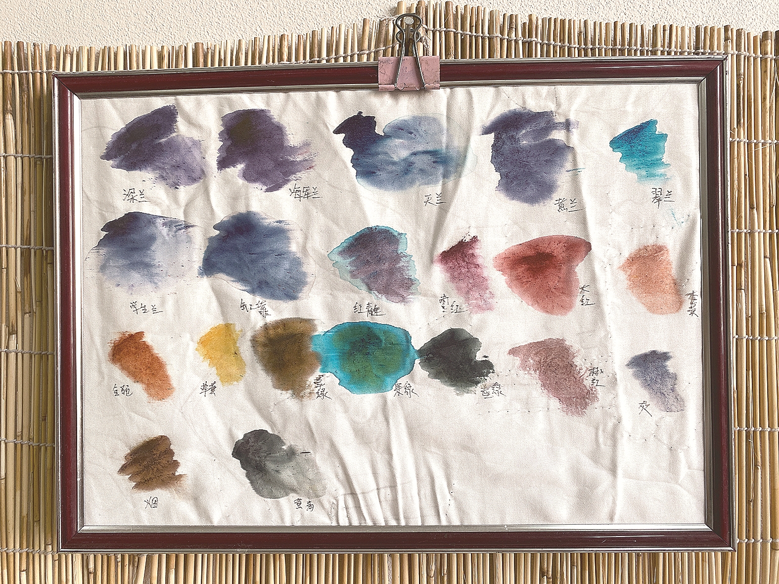 掛在“嬌染坊”手工扎染蠟染非遺工坊墻上的扎染色譜。