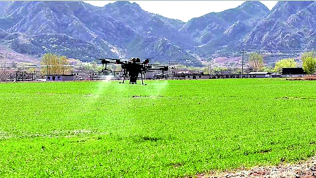 無(wú)人機(jī)進(jìn)行噴藥作業(yè)。  通訊員杜雷攝