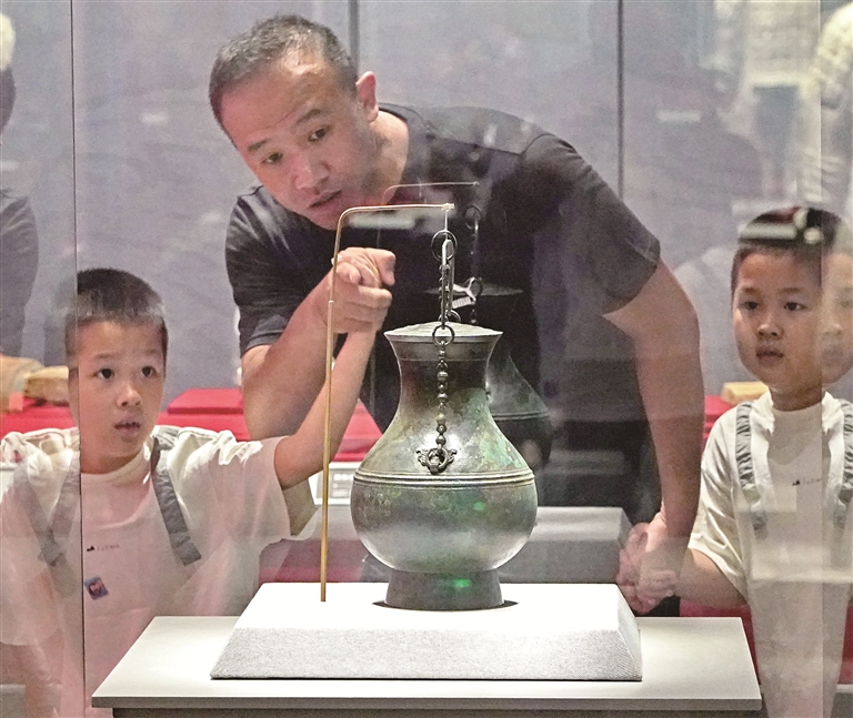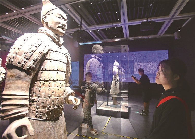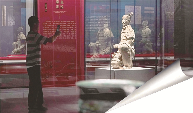 和同學(xué)一起來看展的史惠楠說:“這些展出的文物仿佛為我打開了時空之門,真的讓我有了一種電影《神話》中的那種時空交錯感。”