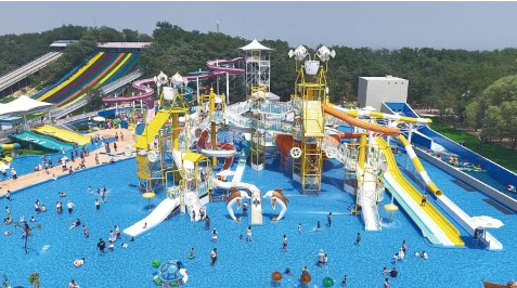 穿過一片柔軟的草坪,半掩山坡的童話小屋赫然入目——低矮的籬笆、小巧的圓門,這里是孩子們流連忘返的霍比特樂園。趙女士的孩子在這里已經(jīng)“撒歡兒”了一個多小時?!斑@就是我們的領(lǐng)地!”孩子們高呼著。星光滑梯、多人秋千上躍動的身影,與家長林蔭下的休憩相映成趣。不遠處的小皮孩游樂場里,星空摩天輪緩緩旋轉(zhuǎn),海盜船里傳來陣陣歡笑與尖叫聲。當午后的陽光變得炙熱,激情洋溢的大型水寨與驚險的水樂園滑道成了消暑天堂,孩子們在水花四濺中可盡享夏日清涼。