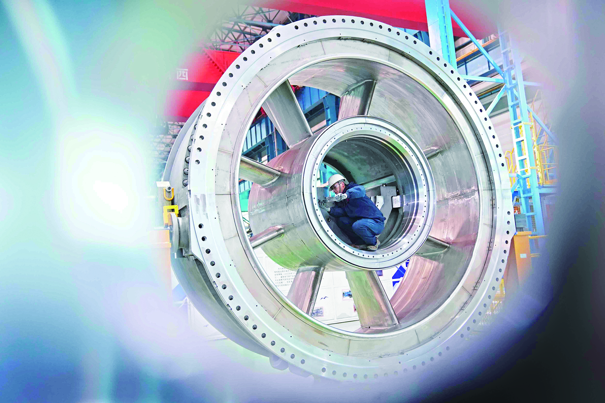 哈電通用燃?xì)廨啓C(jī)(秦皇島)有限公司工人在設(shè)備上工作。