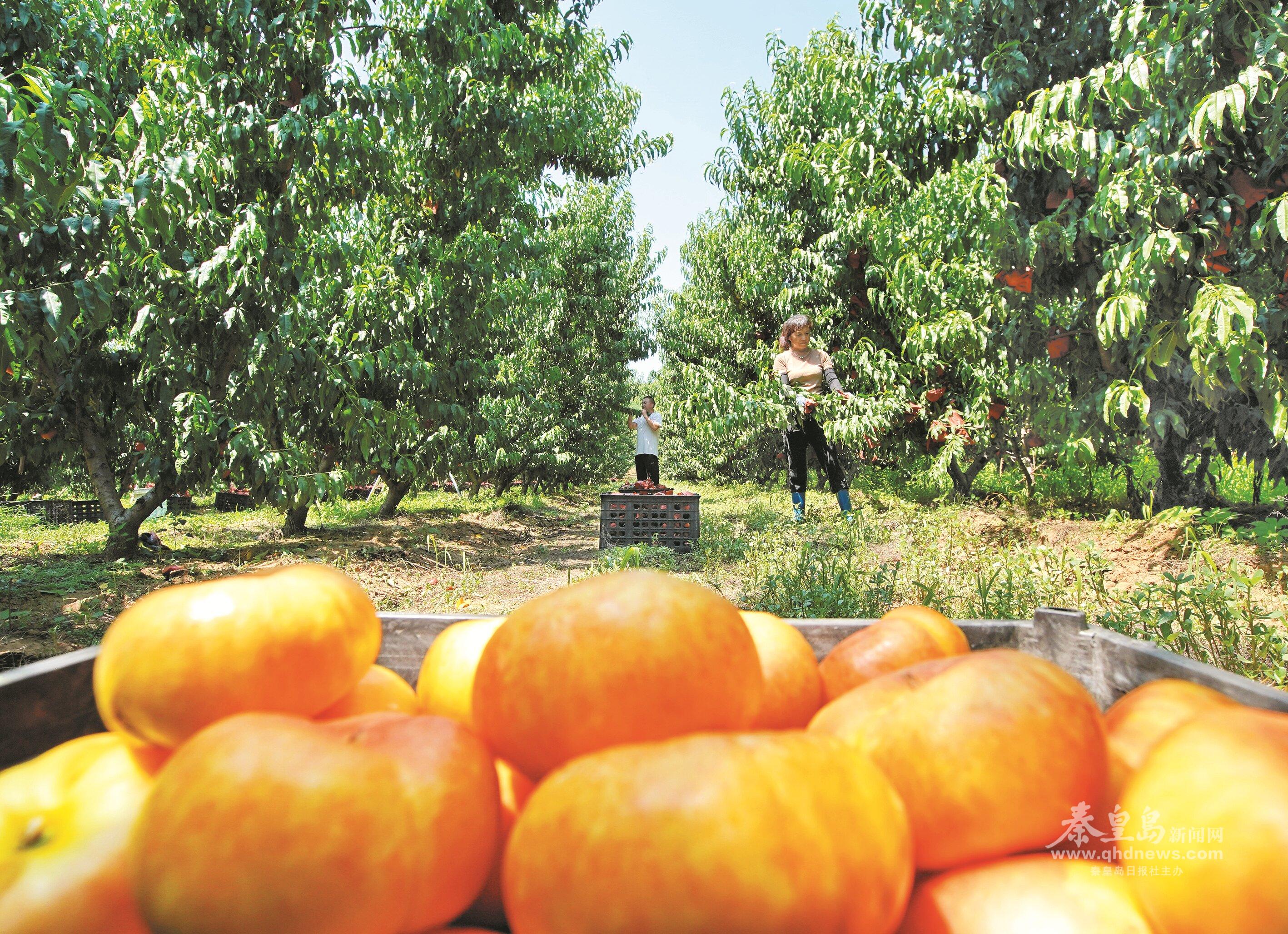 盧龍縣下寨鄉(xiāng)煙筒山村農(nóng)戶正在采摘鮮桃。 記者李鐸攝