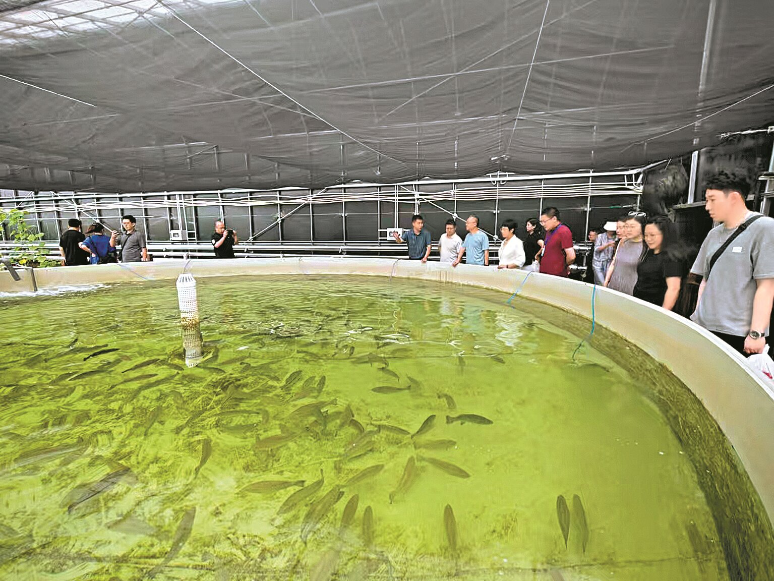 北戴河村日光溫室中的魚菜共生系統(tǒng)實現(xiàn)“養(yǎng)魚不換水、種菜不施肥”。記者 李正男 攝