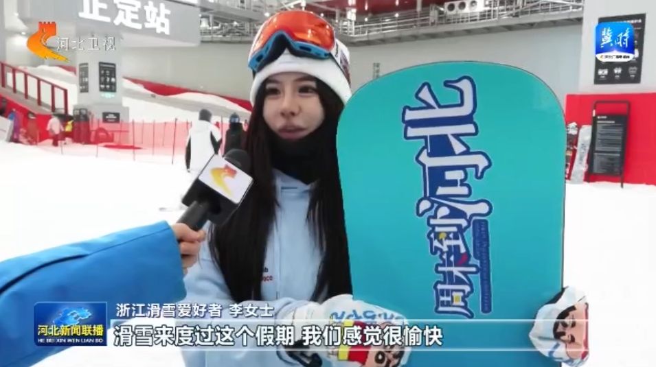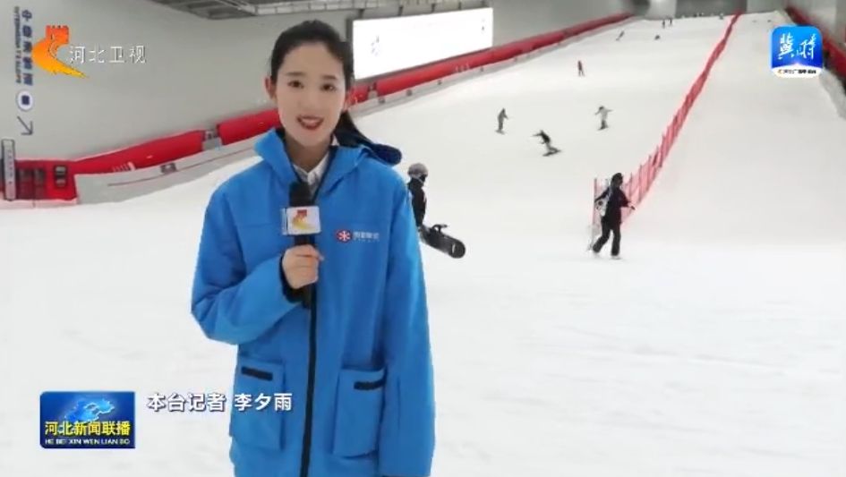 我現(xiàn)在是在我國華北地區(qū)最大的四季恒溫室內(nèi)滑雪場之一 —— 正定熱雪奇跡滑雪場。大家可以看到在我身后的初級滑道和中級滑道,滑雪高手們從高處風馳電掣般滑下,非常的過癮。
