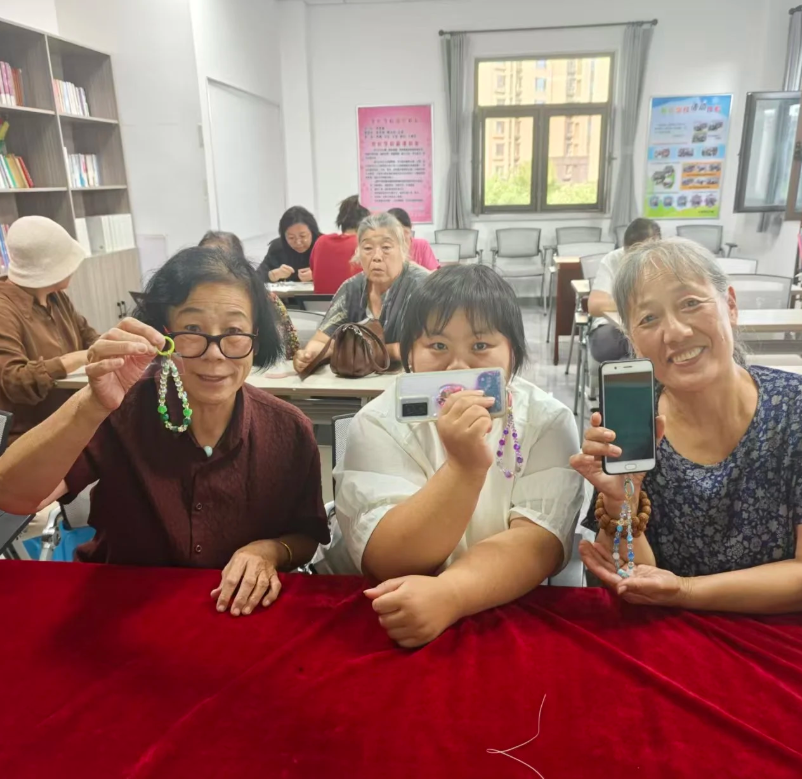 先盛里社區(qū)DIY手機(jī)鏈,串起鄰里情誼與中秋喜悅。
