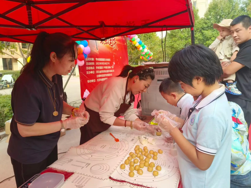 學(xué)府嘉園社區(qū)小朋友制作手工月餅。