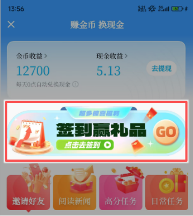 請注意,用戶當(dāng)天賺取的金幣會在第二天0點自動兌換為現(xiàn)金收益,需要補(bǔ)簽時,請及時使用賺取的金幣。