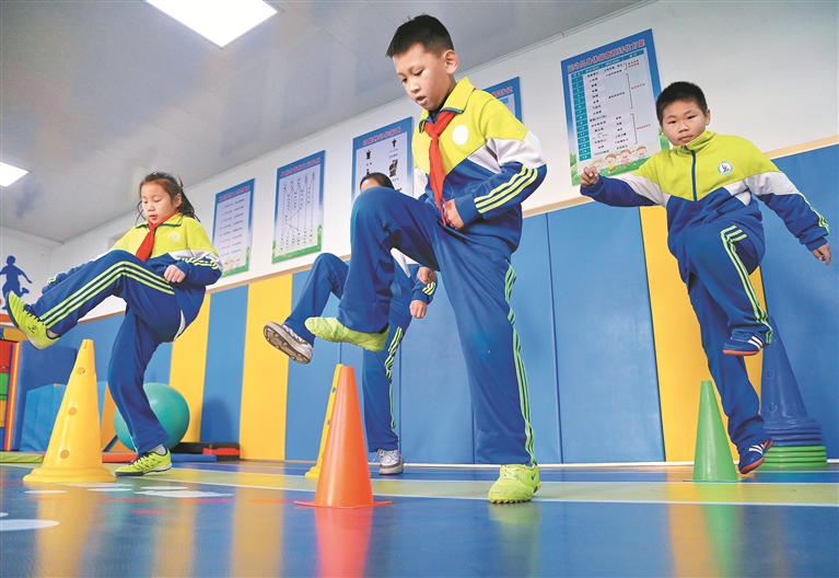 “現(xiàn)在我們除了在大課間開展足球操,還有校園足球聯(lián)賽,每天大課間的時間都會有兩個班級進行比賽,深受孩子們的喜愛?!秉h蕾說。