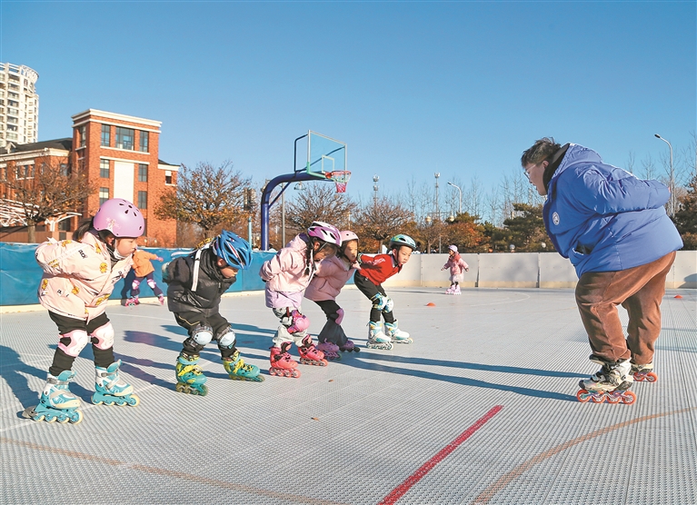 “得益于我市濃厚的輪滑氛圍,學校里的很多孩子都很喜歡這項運動,低年級的同學經過輪滑社團的訓練,再根據(jù)實際情況選拔進輪滑隊、輪滑球隊或冰球隊??梢哉f社團和大課間是這三支隊伍的人才庫,能夠保障我們每年都會有新鮮血液補充進來?!蓖跤犹煺f。