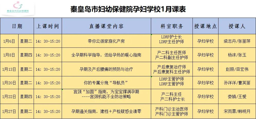市婦幼保健院孕婦學(xué)校2026年1月課表來啦!