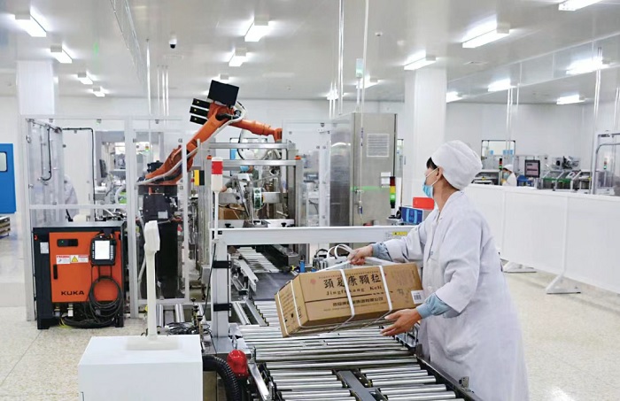 近年來,承德大力優(yōu)化產(chǎn)業(yè)布局,積極打造新質(zhì)生產(chǎn)力孵化基地,形成以特色智能裝備制造、大數(shù)據(jù)、文旅康養(yǎng)及食品醫(yī)藥為主導(dǎo)的“1+2”現(xiàn)代產(chǎn)業(yè)體系,為我市高質(zhì)量發(fā)展注入新動能。圖為承德頸復(fù)康藥業(yè)集團有限公司頸復(fù)康顆粒生產(chǎn)線一角。和合承德網(wǎng)記者 李國強 攝