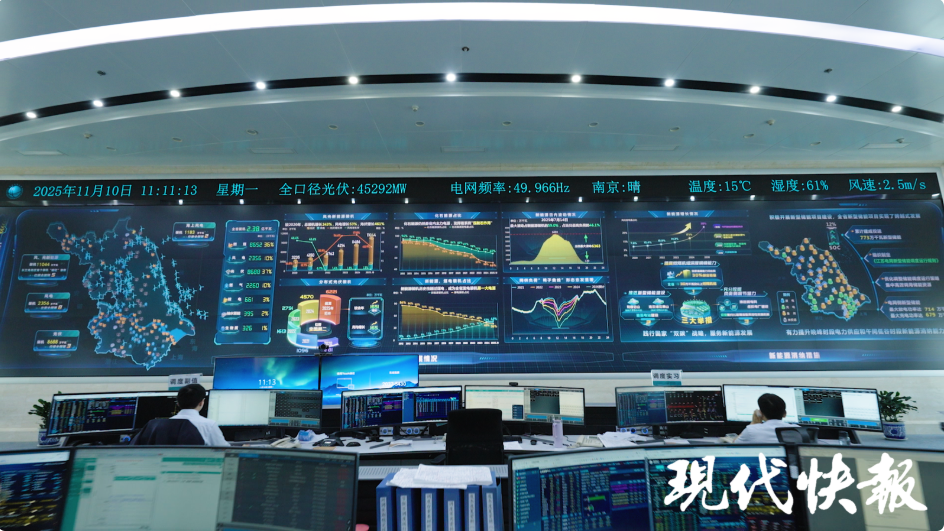 海量清潔能源的涌入,也會(huì)給電網(wǎng)穩(wěn)定運(yùn)行帶來(lái)新挑戰(zhàn)。在國(guó)網(wǎng)江蘇電力調(diào)度控制中心,大屏幕上實(shí)時(shí)跳動(dòng)著全省電力運(yùn)行數(shù)據(jù),調(diào)度員們正在緊張有序地工作,打往各級(jí)調(diào)度和運(yùn)維現(xiàn)場(chǎng)的電話聲不絕于耳——這里便是新型電力系統(tǒng)的“最強(qiáng)大腦”?!坝浀迷?025年8月下旬,‘秋老虎’發(fā)威了,并且風(fēng)電偏低。有天上午,我們發(fā)現(xiàn)晚峰和第二天凌晨預(yù)留的備用電力資源非常緊張。”劉禹聞回憶,團(tuán)隊(duì)迅速調(diào)整了約500萬(wàn)千瓦燃?xì)鈾C(jī)組開(kāi)機(jī)時(shí)間,并安排760萬(wàn)千瓦儲(chǔ)能在午峰充滿電,在晚峰及凌晨時(shí)段放電,成功緩解了用電緊張的問(wèn)題。