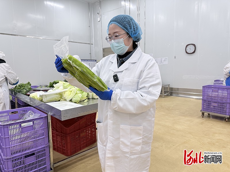 定州市西城鄉(xiāng)東湖村的凈菜加工車間里,幾十名身著潔白工裝、佩戴口罩與工作帽的工人正規(guī)范有序地進行著分揀、切割與包裝,公司副總經(jīng)理馮玉平仔細(xì)查看著一包包封裝好的“河北凈菜”……