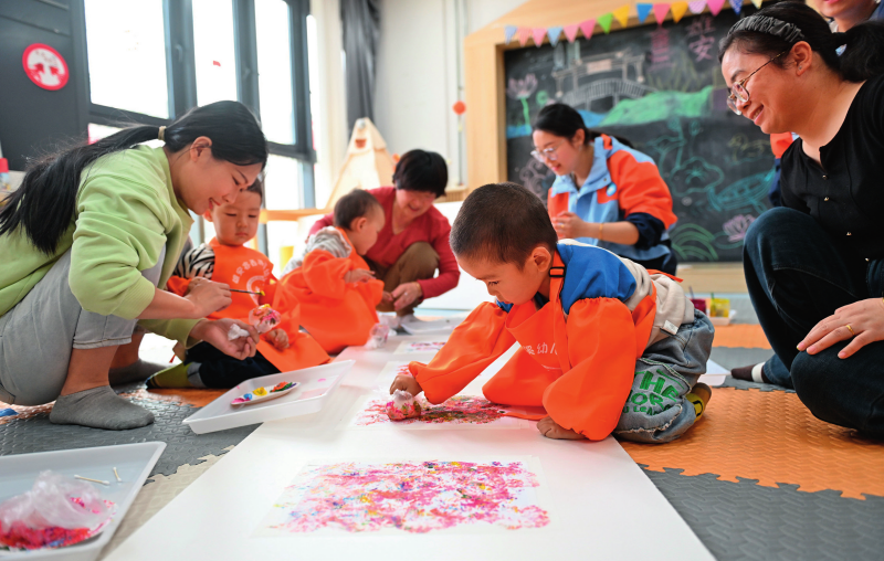 家長帶著孩子在雄安新區(qū)容西片區(qū)賢溪社區(qū)黨群服務(wù)中心親子活動室玩耍。(2025年3月25日攝) 牟宇 攝