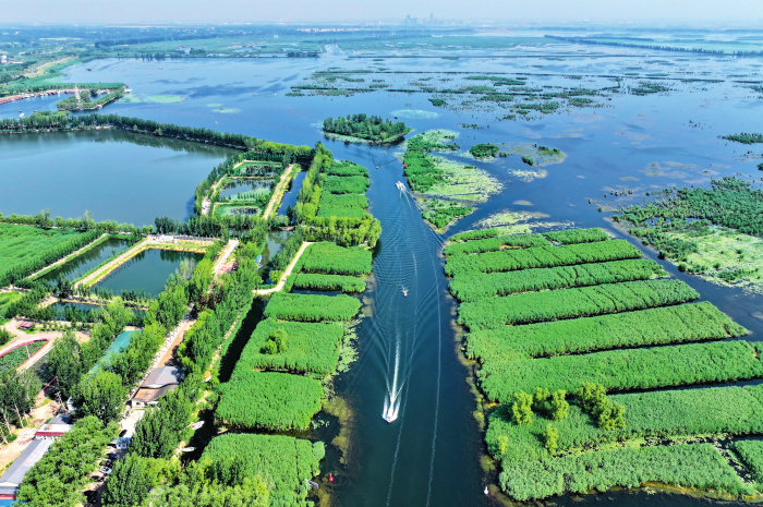 船只在白洋淀內(nèi)行駛。(2025年6月11日攝) 牟宇 攝