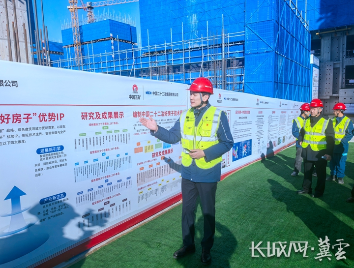 中國二十二冶集團雄安新區(qū)啟動區(qū)創(chuàng)新坊住宅項目相關負責人向參觀者介紹“好房子”標準。長城網(wǎng)·冀云客戶端記者 吳新光 攝